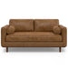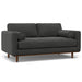 - Handcrafted with quality materials, both the couch and ottoman have sturdy, corner-blocked frames made with solid and engineered woods; webbing and high-gauge sinuous springs under the seat to prevent sagging; and solid wood legs and plinth in a brown finish.