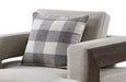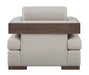 • Elegant Design: This chair features a stunning two-tone fabric pattern, making it a stylish addition to any modern living space. Its track armrests with wood trim and wide block legs in a walnut finish add sophistication and timeless appeal.