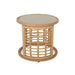 Outdoor Side Table With Tempered Glass Top And Rattan Wicker Cover - Light Brown