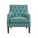 - Espresso Finish: Complements the teal upholstery for a cohesive look.