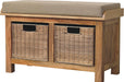 • Artisan Furniture Solid Wood Rattan Basket Linen Bench - This beauty has been constructed from 100% solid mango wood in an oak-ish finish, it has a soft and comfy linen seat pad and 2 rattan baskets that are removable, perfect for storing any bits and pieces you want to be kept out of sight. A lovely neat addition to your hallway.