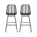 Sawtelle - Outdoor Wicker Barstools (Set of 2) With Faux Rattan And Iron Frame - Gray / Black
