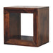 - Solis Open California Walnut Side Table - A bold yet versatile statement piece, this open cube side table is handcrafted from 100% Solid Mango Wood in a rich California Walnut finish. Its clean lines and sleek silhouette offer a modern aesthetic while providing a multifunctional storage solution for books, decor, or everyday essentials. Whether used as a standalone accent, mounted on a wall for a floating effect, or styled as a lamp stand, this piece adapts effortlessly to various interiors. Sturdy, sustainable, and timeless, it combines practicality with artisanal craftsmanship, making it a refined addition to any home.