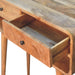 • Sonata Console Table - This simple, elegant console table has beautifully curved edges to fit perfectly in any living space, this 100% solid mango wood unit has been built with sustainably sourced timbers and has two drawers and 1 open slot to help you keep your home organized and storing any little household objects. It has shiny knobs and has a fine finish with 4 Nordic style legs.