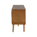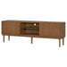 TV Stand With Vertical Slatted Doors And Sliding Panels, Solid Wood Legs - Brown
