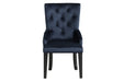 - Elegant Design: The Varian II Dark Navy Velvet & Black Finish Side Chair features a sophisticated Parson chair design with a padded seat, backrest, and sloped low armrests, enhanced by button tufting for an added touch of style and comfort.