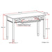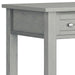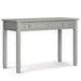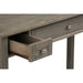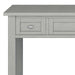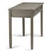 - Transitional Style features shaker style drawers, Brushed Nickel knobs, square tapered legs and square edged table top