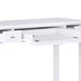 - Features two side storage drawers with metal drawer glides and a flip down central drawer front with internal keyboard tray
