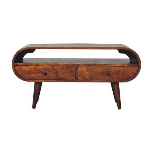 Artisan FurnitureArtisan Furniture Solid Wood Curved Chestnut Double Slot Media Unit - Our solid timber media unit is expertly constructed from 100% solid mango wo...