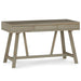 - Features sturdy trestle style supports, three drawers and flip up storage concealing 2 built-in power outlets with 2 USB ports
