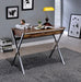 - Sleek Modern Design: The writing desk boasts a weathered oak wooden top with a paper veneer finish, complemented by chrome-finished "X"-shaped metal legs, creating a stylish and contemporary aesthetic.