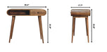 - Curved Chestnut Writing Desk - Introducing our stylish Writing Desk, crafted from solid mango wood. It's sustainably sourced and comes in a beautiful chestnut finish. With one open slot and one drawer, it helps keep your space tidy. One shiny brass knob and and four Nordic-style legs add a touch of elegance. Perfect for work or study, this desk is a functional and attractive addition to your home or office.