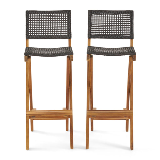 Outdoor Folding Acacia Wood Barstools With Rattan Backrest And Seat