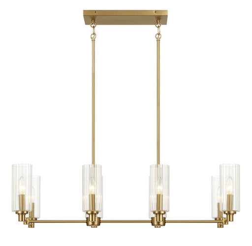 Ashcroft FurnitureElegance and Warmth: The Willow Eight Lights Island combines clear ribbed glass with a satin brass finish, infusing any room with elegance an...