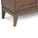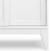 - Mid Century Modern design includes notched handles on doors and angled tapered legs