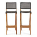 Outdoor Folding Acacia Wood Barstools With Rattan Backrest And Seat, (Set of 2) - Dark Gray
