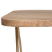 • Features unique shaped solid wood top and gold metal hairpin legs