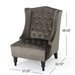 Toddman - Hi Back Club Chair Velvet With Wingback Design And ButtonTufted Detailing - Gray