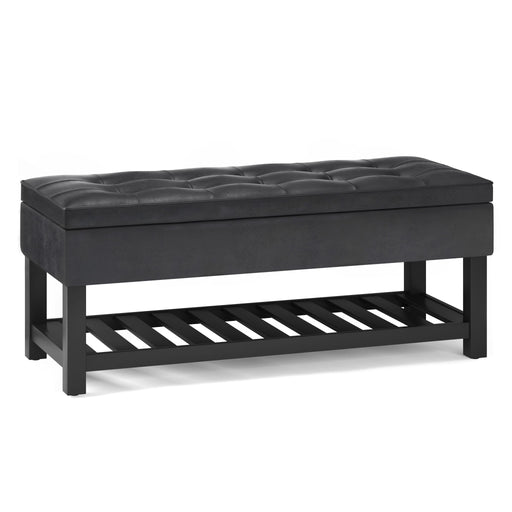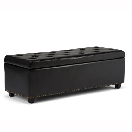 Simpli-HomeHand constructed using solid wood, engineered wood and high density foam Upholstered with a durable Midnight Black Vegan Faux Leather Features lar...