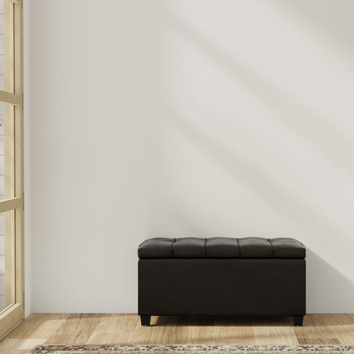 Simpli-HomeHand constructed using solid wood, engineered wood and high density foam Features large interior storage space with child safety hinge to prevent ...