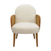 Mid Century Accent Chair With Rattan Armrests, Velvet Upholstery & Wooden Legs - Ivory