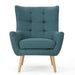 Mid Century Modern Club Chair With Tufted Back And Rubberwood Legs - Teal