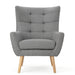 Mid Century Modern Wingback Club Chair With Tufted Back And Rubberwood Legs - Wheat