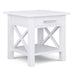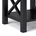 • Features one large drawer with metal drawer glides and an open bottom shelf providing ample storage space.