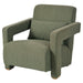 Sleek Right Angle Armrests, Ergonomic Lumbar Support, Square Wooden Block Legs, Inclined Seat For Comfort, Artistic Statement Piece For Living Room, Bedroom And Study - Green