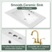 - Ceramic Sink: Easy-to-clean sink with water stain resistance, pre-drilled for 4" widespread faucets (not included) and features a -finish overflow.