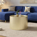 - Textured Hammered Metal: Elevate your decor with the Round Coffee Table's hammered surface, which adds a stunning textured look, seamlessly blending with a variety of decor styles for exceptional aesthetic versatility