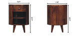 - Artisan Furniture Solid Wood Cortez Bedside - This elegant and modern table is made from 100% solid mango wood in a finish, its minimalist design is bound to complement any bedroom decor. The spacious tabletop provides ample space for your bedside lamp, phone, and other essentials, while the 1 drawer and 2 open shelves offer convenient storage for books, magazines, and other items.