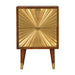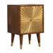 • Manila Gold Nightsand - This Manila Gold Chestnut nightsand Table was designed to add a touch of elegance and charm to your bedroom. Featuring brass-plated drawers and Nordic-style brass cap feet, this piece has been constructed from 100% solid mango wood and offers a rich chestnut finish along with pull-out handles and surface space to uplift your whole bedroom look.