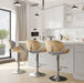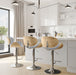 • Features sturdy polished chrome base with 360 degree swivel and footrest. Seat Adjusts from bar to counter height with gas lift