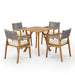 Outdoor 5 Pieces Rustic Patio Acacia Bistro Set With Cushions - Teak / Gray Rope