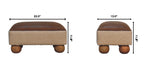 - Features: boucle, cream, tan leather, ball feet, solid wood, mango wood, upholstered, accent piece, hallway, living room, footstool